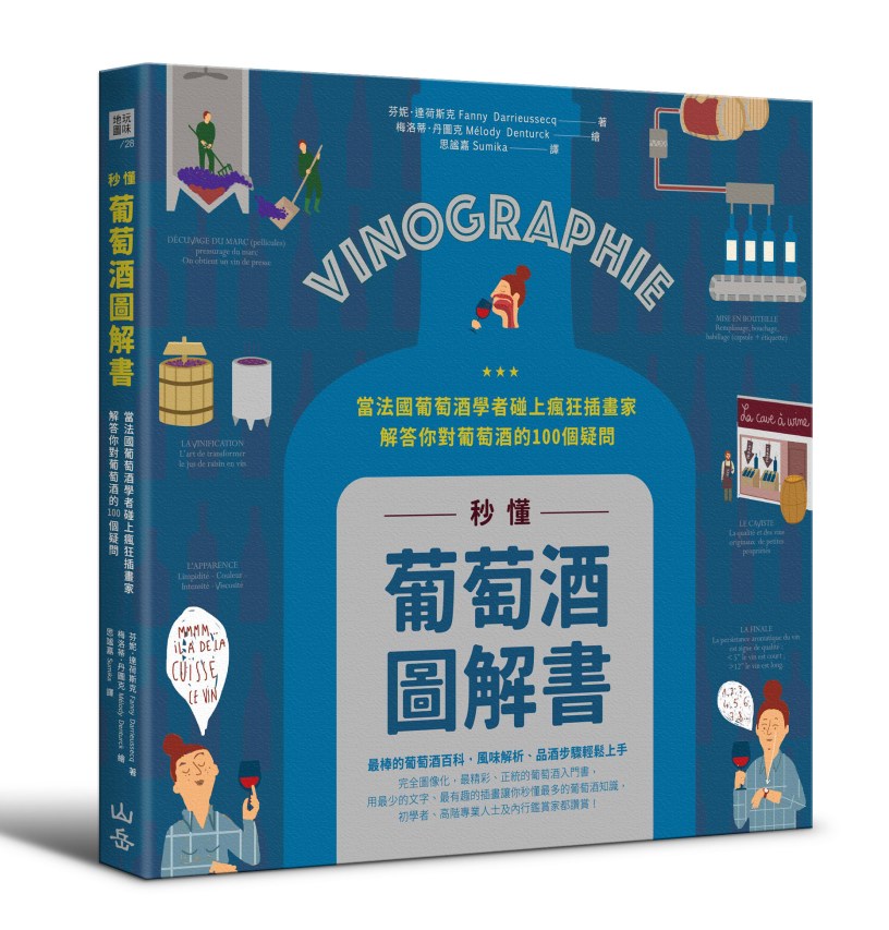 然而,喝葡萄酒如此輕鬆愉快,為什麼一般葡萄酒書那麼晦澀艱深?為了讓廣大葡萄酒愛好者不再對葡萄酒知識望之卻步,法國專業葡萄酒學者芬妮.達荷斯克(Fanny Darrieussecq)與插畫大師梅洛蒂.丹圖克(Mélody Denturck)聯手出書,以賞心悅目的圖解搭配平易近人的文字,讓你用閱讀繪本的心情「秒懂」葡萄酒!